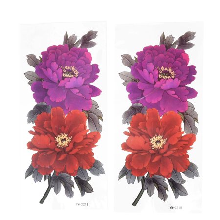 Fuchsia Orange Floral Print Temporary Tattoo Transfer Sticker 2