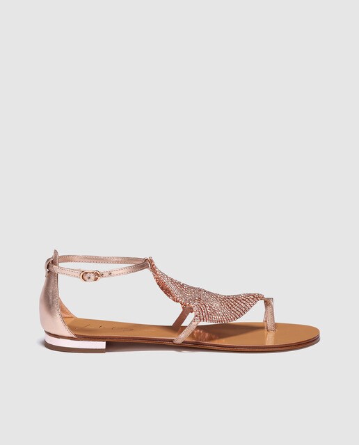 Lola Cruz Pla Rom Cri Sparkly Flat Sandal Gold And Tan
