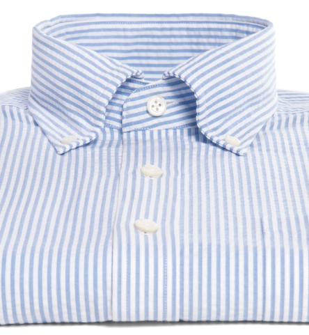 Portuguese Blue Stripe Seersucker Custom Dress Shirt By Proper Cloth