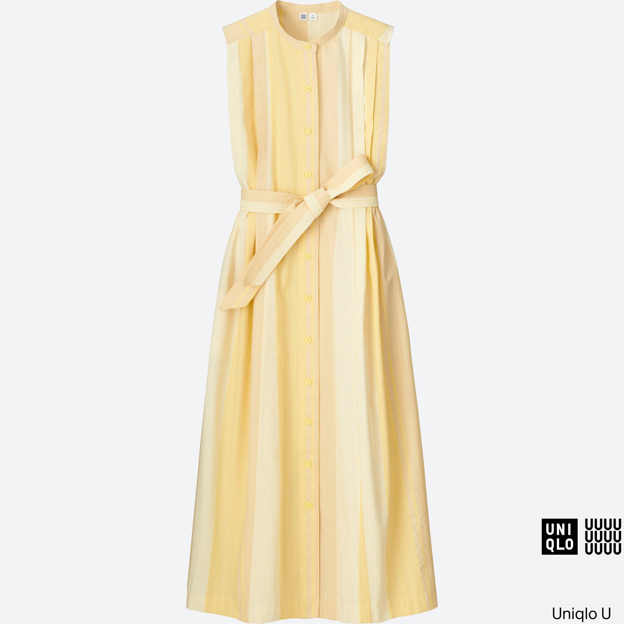 Women U Seersucker Sleeveless Long Dress Uniqlo Us