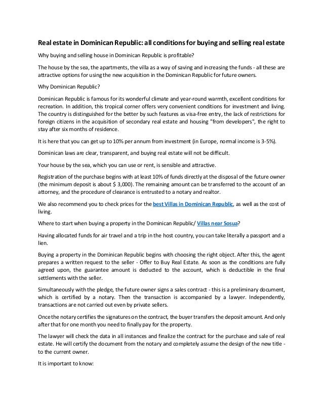 Real Estate In Dominican Republic All Conditions For Buying And Selli